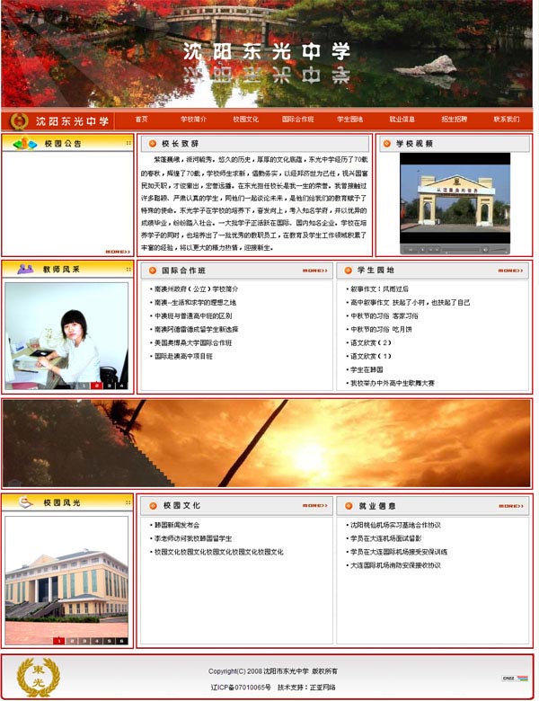 沈陽東光中學(xué)創(chuàng)辦于1937年,隸屬于沈陽教育局,悠久的辦學(xué)歷史,特色的辦學(xué)理念,完善的教學(xué)設(shè)施,使今天的東光中學(xué)成為振興遼寧經(jīng)濟(jì)、振興民族教育、提高民族素質(zhì)的搖籃。學(xué)校周邊綠樹環(huán)繞,交通便利,為學(xué)子營造了優(yōu)雅別致的學(xué)習(xí)環(huán)境。目前學(xué)校投巨資,改建了教學(xué)樓、綜合樓、教室里安裝了現(xiàn)代化教學(xué)設(shè)備—投影儀、電腦及主控設(shè)備,使每個學(xué)生都能夠享受到信息化時代的優(yōu)質(zhì)課堂教學(xué)。學(xué)校還開設(shè)了選修課,實(shí)行學(xué)分制,學(xué)生實(shí)現(xiàn)個性化發(fā)展搭建了平臺。